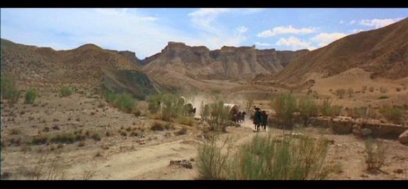 ご存知、さすらいのガンマンのクレジットタイトルのバックの景観。