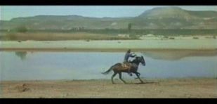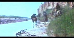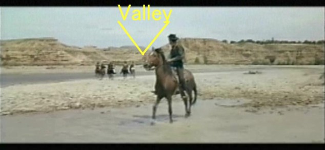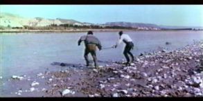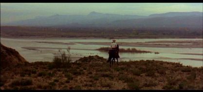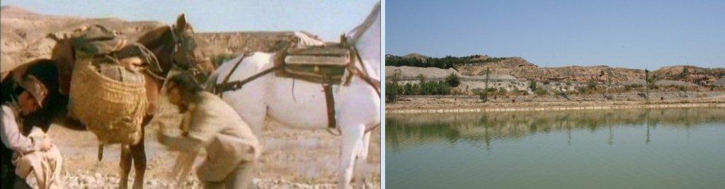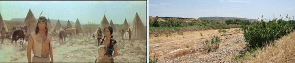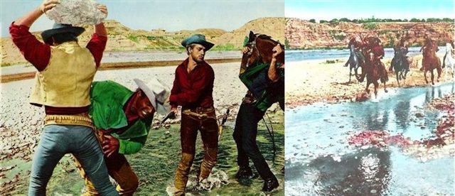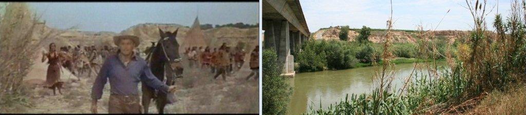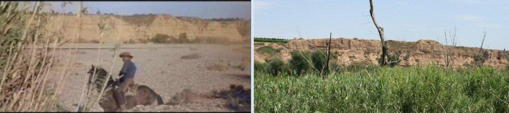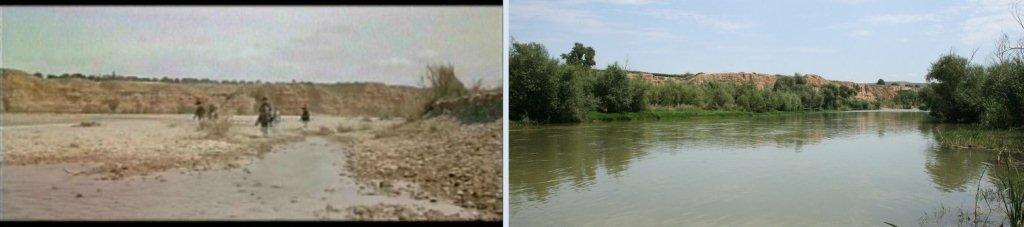 小さくてはっきりしないが、「荒野の10万ドル」撮影当時の1965年は、この川を流れる水は澄んでいてとてもきれいだった。