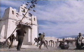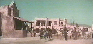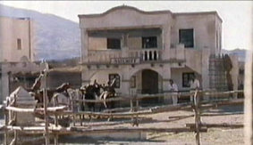左:1999年 夏 広場に面した建物。 右:Blindman (1971) のワンシーンから。
